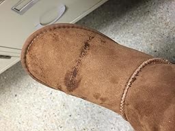 If you have invested in uggs or any other non water proof suede boots you better get this fast! I was scared to spray my light colored uggs so I did my light brown slippers first, and it is perfect, got darker when sprayed then dried perfect. So I did all our uggs from dark to light, even light pink ones and the only difference is u can poor water on them and it just beeds up and rolls off. Great product, will probably re do yearly just to be safe