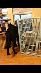 We purchased this and just put it together. Easy to assemble. Made well. We adopted a shelter dog and we're having some marking issues. Only when I go to do something else. We put his kennel cage inside of this along with his dishes and he went right in , likes it . When I go out was concerned about him getting to his water . He can do that now.