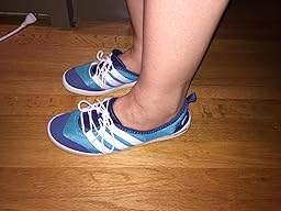 My plan was to wear this water shoe in Disney World to avoid getting my good sneakers wet. I was excited when I found the listing because the shoes were super cute! I read through most of the ratings, and decided to place the order because (generally) I have loved Adidas shoes. I felt as though there were enough positive ratings to outweigh the bad. However, after receiving the shoes this morning, I was immediately disappointed. The shoe itself fits wide in the toe and heel but EXTREMELY narrow through the arch (& I have a narrow foot). The inside of the sole is some sort of mesh/net type material, which was not at ALL comfortable! There was literally no cushion in them whatsoever. I also didn't care for the tongue of the shoe. It looks rubbery and soft in the photo, but in reality, it is hard and plastic-like. This made them very uncomfortable, as they were poking into the top of my foot. Less than an hour after they arrived, I had them back in the box and on their way back to the store.