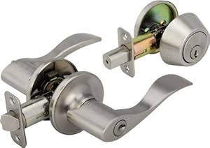 This item: Legend 809127 Wave Style Lever Front Door Knob Entry Leverset Lockset and Single Cylinder Deadbolt Combination Set, US15 Satin Nickel Finish