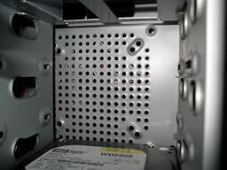 Since the drive rack is pop riveted in place, trying to bend it a bit to scrunch in the HDD is a bear, as doing so tends to want to distort the top and bottom of the case. As it was, it was so tight, it scratched my brand new HDD.