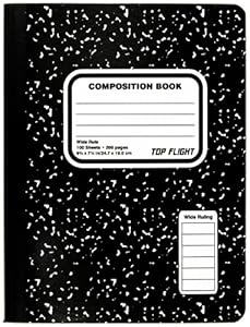 I use these classic marble composition books for Everything imaginable. I like the 9-3/4" x 7-1/2" books, l00 pages, wide rule. The books made by Top Flight and Mead are so similar that I look for the "better price." Tape identifying labels on their spines and line them up on the shelf of a bookcase. Very handy. Spiral notebooks get all tangled up with each other; these don't. 5 stars to both the Mead books and the Top Flight books.