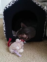 This little "Cat house" is not only adorable but my cats love it! I have two cats and I will probably have to buy another one because it always has a kitty laying peacefully inside of it. It is very sturdy but they only downfall is the fur really sticks to the material.