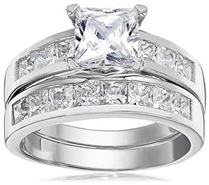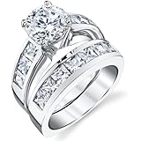 • Sterling Silver Cubic Zirconia 2.8 Carat tw Princess Cut CZ Wedding Engagement Ring Set