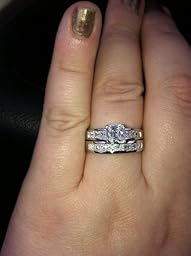 I literally just got this ring in the mail and it is absolutely gorgeous! It is everything the description says and more! True to size, Awesome quality, very sparkly and does not look cheap at all. When I got married my husband and I couldn't afford a very big ring and although it is small I do love it because it is real diamond and white gold and most of all because it came from my husband. My husband and I are going to Las Vegas for our anniversary and the thought of loosing my real ring terrified me since it means so much to me. So I came on Amazon to find a nice "travel" ring if you will. The more I shopped the more I realized why not go flashy especially since we would be in Vegas but I didn't want it too fake looking either. I loved this ring because it was silver and wouldn't turn my finger green but I was a little weary of purchasing a CZ for $35. Boy am I glad I did, you'd have to be a pro to be able to know this ring was not real and it is definitely worth the price. Now I can keep my precious ring safe while looking super glam in my travel ring. I love it so much me and my husband decided when the day comes that we can afford a bigger ring we want it to look just like this. This is one happy amazon shopper.