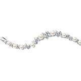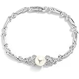 • EVER FAITH® Bridal Silver-Tone Simulated Pearl Flower Leaf Clear Austrian Crystal Bracelet
