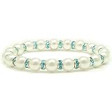 • EVER FAITH® Bridal Silver-Tone Flower Simulated Pearl Stretch Bracelet Clear Austrian Crystal