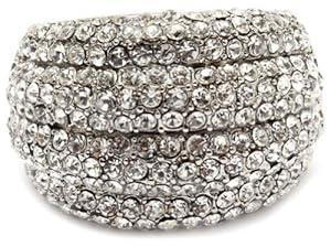 Glamorous Dome Shaped Cocktail Fashion Statement Ring with Dazzling Clear Crystals - Stretch Band