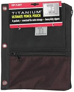 Top Flight Titanium Zipper Pencil Pouch with 4 Pockets, 8.125 x 9.75 Inches, 1 Pouch, Black/Red (4511636)