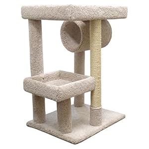 Well-made cat furniture which was delivered in five work days. Our cats love it. We bought it primarily for the top lounging platform for our two large cats. We sealed off the hole and made it a solid platform. The cats climb up the side, so the hole is not necessary. Only wish the tube was larger for our biggest cat who loves to sleep in tubes. An 11"x 17" tube would be better than the 9"x 13" provided. It was packaged beautifully for safe shipping. The purchaser has to attach the lower lounging tray, which took a couple of minutes with a battery pack screw driver/ drill to drive five provided screws. The screws were lined up and ready to drive. Very happy with this product.