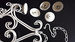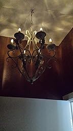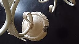 What I received was a flat off white and not at all paint-textured. You have to unfold it a bit on its axis as it arrives folded flat. The rails had surprising holes on the bottom side, visible from below, which I was able to fill with standard Spackle, a bit carefully. The candle holders aren't level and so it took some patience to torque them a bit and then to get these candles level TBW LED Flameless Taper Ivory Candles with Remote and Removable Clips, Drip Effect, Set of 10. One candle holder had a major chip but that was pretty easily remedied with acrylic paint. You get what you pay for -- this is a tin chandelier. With some work it turned out fine, though I lament that the bottom finial isn't level. It's tipped sideways a bit and I notice it's tipped though I doubt others do.
