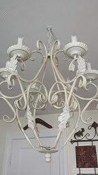 I bough this to hang in my bathroom for a shabby chic look. Look accomplished, however it is not ivory... more so it appears they took a black/grey chandelier and brushed on some thick ivory paint. Putting candles in it is a bit annoying, not all the pegs are straight...I paid $30 and will be keeping it.