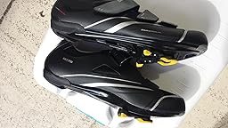 What can I say... this is a great inexpensive cycling shoe option from the very well-known Shimano brand. I wanted to get a quick strap velcro-less shoe but didn't want to spend over one hundred dollars, so I decide to just get a velcro strap shoe after trying it on at the local bike shop (which I highly recommend you do before ordering any shoe online). I saved over $15 getting this Shimano shoe on Amazon as compared to the bike shop and got the exact same item I was expecting for right around $75. Even with the 3 velcro straps, the shoe fits snugly and straps fairly well. I am right in between a 46 and 47 so I went with the more comfortable 47 since the 46 was pushing against two of my toes. It has a stiff toe box area so don't plan on having this shoe "mold" to your foot, but it's a cycling shoe so that isn't really the point. I hope it lasts a long time! I have added some pics of the shoe itself right out of the box and also added a few pics with the Shimano Cleats SPD-SL SM-SH10/SM-SH12 (Design: SM-SH11) that I needed for my Shimano pedals. Everything works perfectly so far... so no complaints!