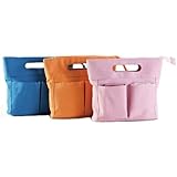 This has lots of room without being too big. I like that it is separated in the middle by a zipper section. You are able to keep everything organized without it falling into a bottomless pit. The handle is a little small put you can carry it in your hand or forearm. It has a outter side zipper pocket and in the opposite section on the outer wall has two different pockets, great to store your cell phone for easy access. Great purchase for the money.
