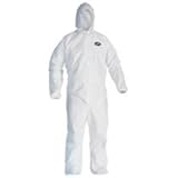 • Kimberly-Clark KleenGuard A10 Polypropylene Light Duty Disposable Coverall with Hood and Boots, Elastic Wrist, White, Size 2XL (Case of 25)