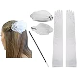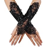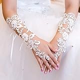 • WAWO White Flowers Bridal Gloves Fingerless Satin Lace Pearl Wedding Party Prom