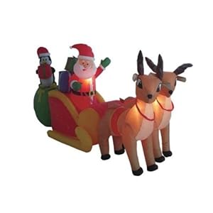 So, we bought this for this last Christmas as a fun inflatable lawn ornament. The pump was not powerful enough to blow up the reindeer EVER. The Santa and penguin were always upright, but even with some coaxing, the reindeer were...well, a little flaccid. Maybe Utah winters are too cold for this yard ornament. Pretty disappointed.