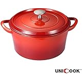 I have owned Copco and Le Cruset for over four decades, along with several other pieces of cast iron - both coated and plain. Cast iron is by far my favorite cookware ... and the striking thing for me is that this relatively inexpensive pan is clearly equal to any of them. The weight, the fit of the lid, the nonstick quality of the pan lining, the near perfect efficiency with which the pan achieves even temperatures across the cooking surface ... all are five stars. I wish I knew who the actual manufacturer of this was, as I would eagerly seek them out in replacing or adding to my cookware collection. Recommended without reservation.
