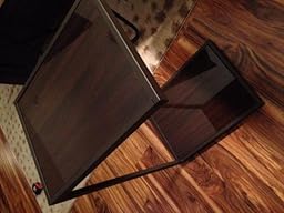 I love this little stand, it was super easy to put together and it looks very expensive. The two levels are a shiny wood/wood type product and it looks nice. it's sturdy and hasn't fallen over. I have it on carpet and it's very solid. Well worth the money and is working perfectly for my needs of using the computer at the couch.