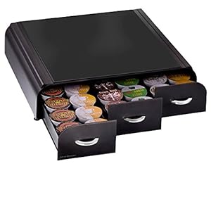 I tried 3 other k-cup storage drawers before this one. The others just didn't hold the pods right. Whether it was insufficient height, or not enough width, or the tray not staying parallel to the floor, they just didn't work. THIS ONE WORKS. Is that so much to ask? The handles are screwed on, not glued like another review I read (perhaps they changed due to feedback?) and it's nice that there are three separate drawers so you don't have to pull open a whole tray. Love it!