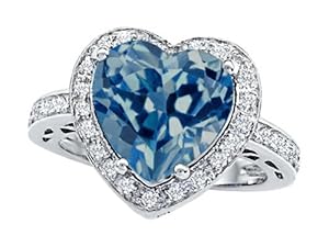 The beautiful Original Star K Large 10mm Heart Shape Simulated Blue Topaz Wedding Ring, crafted in 925 Sterling Silver. This attractive design is mounted with 1 stone prong set medium to dark blue Heart Shape Simulated Blue Topaz, 28 stones channel set colorless Round Brilliant Cubic Zirconia. This style measures 13.50 mm wide, 13.50 mm long. Designer: Star K - This beautiful design, is part of the exclusive Star K. jewelry collection. Star K. designs are copyrighted, so please be aware of cheap imitations selling online. Only original Star K. creations are made using the highest quality materials and craftsmanship, backed by an exclusive Lifetime Warranty. Warranty: - This item is covered by our exclusive Silver Shield Lifetime Warranty. This exclusive lifetime coverage is offered ONLY by Finejewelers so please shop with confidence, our quality is guaranteed for life! Metal weight may vary with finger size and metal choice.