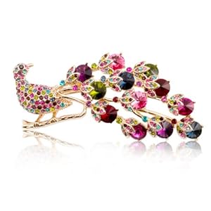 Fashion Plaza Vintage Style Peacock Brooch Pin Multi Color Crystals BR114