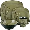 Great looking, stylish, and "user-friendly" set of dinnerware. I love the pattern and the fact they can go in the microwave. Easy cleanup. Prompt delivery. Packed properly.