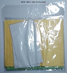 I've been using the "Magic" version of this product for several years with much satisfaction. I don't think I've ever used one of these to the point to where it needed to be replaced, but... I keep them everywhere, and like them so much I often give them away to friends and relatives (and like ink pens, they just go missing in action :) So was time to stock back up and I thought I give these a try. Well in every way to me they appear to be the same as the Magic ones as to size, quality and ability to quickly clean glasses (no scratches or lint), phone and tablet screens. I like that you are offered more color choices and the price is about half. They do Not come in individual little pouches like the others (which I liked very much for convenience), they do come in a big zippered pouch as per the photo another posted with their review of 02/10/15.