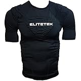The chest pad has velcro at the bottom. The placement of it lands on his hips so as he moves it slides up to his waist where he is thinnest. This pushes the top of the pad up into the bottom of his mask. He looks like he has inflatable sholder & chest pads. It looks ridiculous & is cumbersome. It will stop the pain of your first time being shot but not that of everyone laughing at you.