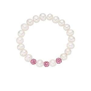 Children's and Baby White Cultured Pearl and Crystal Stretch Bracelet - Pink