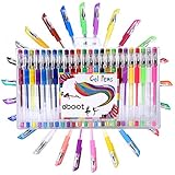 Nice pens, however, I notice that the gel ink skips a little when writing or drawing. This is not a huge issue for me, but I would prefer them not to skip for the price paid. They come with a small rubber cap on the tip of the pens to prevent the gel from drying out. You can choose to throw it away or keep them if you're not planning on using it all the time. The clip is also adjustable and you can clip it on larger things if you want to. The color of the pens are lighter than I thought they would be and would be great for darker paper.