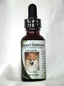I searched and found Cataract Defense on an internet blog and I was skeptical but gave it a try anyway. Just within 2 weeks of adding this to his diet, I noticed he was not staring and seemed to be more alert. This WORKS! And he now takes food from my hand carefully and leaves my fingers alone. I am very very pleased with the results I've gotten so far. He has his own dogfood but I mix this with food I know he will gobble up, like a bit of meat or veggies from our dinner plates, chopped up small so he does not know it's there. I don't want him to miss a single drop.