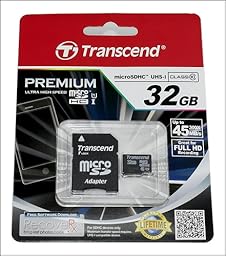 Transcend 32GB MicroSDHC Class10 UHS-1 Memory Card with Adapter 45 MB/s (TS32GUSDU1E)