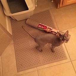 (Oh, and... sometimes I think I should've bought a bigger mat. But, then I realize that this size is just fine. It traps the litter and there's no sand beyond the mat... So, it's working, don't need a bigger one!)