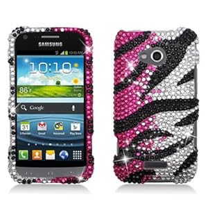 • Aimo SAML300PCLDI675 Dazzling Diamond Bling Case for Samsung Galaxy Victory 4G LTE L300 - Retail Packaging - Zebra Pink Waterfall