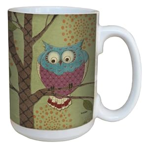 This item: Tree-Free Greetings lm43431 Whimsical Owl on Green by Paul Brent Ceramic Mug with Full-Sized Handle, 15-Ounce