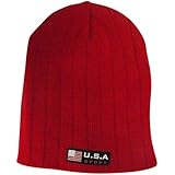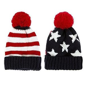 • TOOGOO(R) US Flag Knit Beanie Crochet Rib Pom Pom Hat Cap Blue & Red