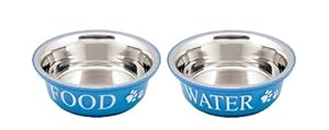 This item: Buddy'S Line Non-Skid Stainless Steel Fusion Food/Water Serving Pet Bowl, Blue/White, 1-Pint
