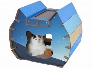 This "cat house" is really cute, but it is difficult to keep together. The actual construction is simple, but keeping the separate pieces together correctly is not an easy task. While holding the pieces in place you must tape each seam (the directions do not tell you this). If you do not tape them, they will "pop" back out. Personally, I would not buy it again. Like I said, "it's cute, but ....."