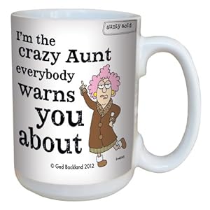 I bought these coffee mug because it reminded me of my special aunt that I love and enjoy very much. When she received her mug she was so delighted that she immediately called me and thanked me over and over for the delightful mug. If you have a special aunt with a good sense of humor then she will most likely really treasure this coffee mug. Good Luck.