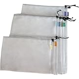 I was skeptical about this purchase at first because of the cost and my past history with flimsy woven mesh, BUT these are gorgeous, soft, well-made bags that are perfect for sooooo many situations! The cost is minimal compared to the quality. I use them as stuff sacks in all my sewing stashes - the little ones for toggles and buttons and the XL size for yarn, cloth, etc. I had been using see-thru plastic containers because the soft mesh I'd used in the past was weak and short-lived. These bags are much sturdier! The XL size will hold about the same amount of stuff as a shoe box, so I am planning on purchasing more of them when it is time to put away winter storage - a great alternative for stuffing away wool socks and chunky-yarn hats. I thought originally that the small sizes would be good for only small grocery shopping and a few trinkets, but they have become must-have organizing tools in every room and laundry is MUCH easier. In the bathroom, the bags are perfect for collecting hair ties, small bottles, lip balms... and I hang one in the shower to catch rings, earrings, etc. The mesh is tight and dependable. We've made closet and drawer sachets with whole coffee beans and whole cloves. *I did add toggle buttons to the bags that take the most opening/closing abuse (the cord knots are impossible to untie if they are wet), but my clever pre-teen is experimenting with creating much prettier, leather slip-closures and colorful crochet slides.