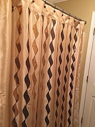 Very attractive shower curtain. Is dark beige with shimmering brown and dark gold sequins sewn on fabric. My husband said it looks like Las Vegas sparkle. It is very different and pleasing to the eye. It really brightens up the bathroom with color. Use tan rugs to match the fabric. I would recommend that you purchase this shower curtain if you want to make a positive statement. It is very likeable!