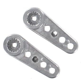 The servo horns are a great buy. They are made from aluminium, and they fit perfect on the servos, and they are made of a high quality metal. The holes offer great adjust ability for what ever you are connecting it to. They didn't break or even fled when they were used on a high torque servo. The servo horns also fit snug on the servo it self which gets rid of the worry of it stripping the servo and it self.