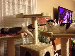 Ok I read the reviews and I know it has some bad ones and some good ones. First off this is the first "cat toy" my wife and I have ever had. We adopted 2 cats, one being a about 12 pounds and the other a kitten that is growing fast !! We looked at all the pet stores and I was in shock they wanted $200 for their biggest and best, and it wasnt half the size and only had one little "house". The $200 one was shorter and not as many features, like not all the post were scratching post, only one little house and either one or no perches.