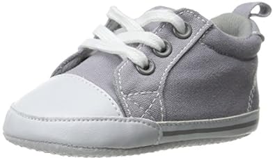 Luvable Friends basic canvas sneakers are a great complement for your baby's outfit. Made of durable materials with non-skid soles these baby shoes come a small tab on back for easy on and easy off dressing. Perfect for wearing with any Luvable Friends outfit! soft, non-skid dot soles make these great crib shoes for pre-walkers and help beginning walkers feel the floor and keep their feet under them. Great for coordinating with mommy or daddy's sneakers or with many of our Luvable Friends layette outfits.