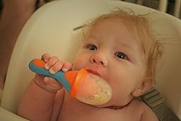 I have four children and my youngest is 7 months old. In the past we've tried the "net" style self feeders which were always very messy to clean out. The Boon Pulp Silicone Feeder is so easy to clean and my baby LOVES to feed himself with it. We put bananas, apples and avocado so far. I want to tell all my friends with babies to get this. Really great product!