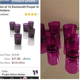 I was looking for some accent votive candle holders for a Halloween table. Finding votive holders is relatively simple but finding PURPLE holders is a little tricky! I was a little leery of what they deemed "purple." I didn't want lilac but I didn't want to be stuck with a color that looked more black than purple. These are perfect! They are a true purple and the glass is smooth and clear. I didn't exactly want a dozen but I am so glad I got them now. The price was great too. They will come in handy. Want to look for more colors in these votive holders. Great find!