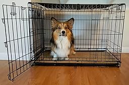 (Pictured is my 25 lb Corgi in a 36" crate)