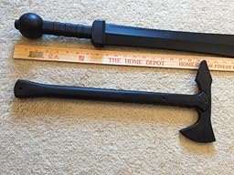 Really nice training tool. Be warned however that the 'blade' on this is still a hard plastic compound and WILL hurt if someone gets struck with it. It is a rugged training tool and I use it several times per week. A few scuffs from some medium force pell training but that is about it. I would recommend this if , like me, you train with a 'hawk. Really no complaints here.