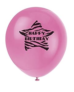 • 12" Latex Zebra Print Birthday Balloons, 8ct